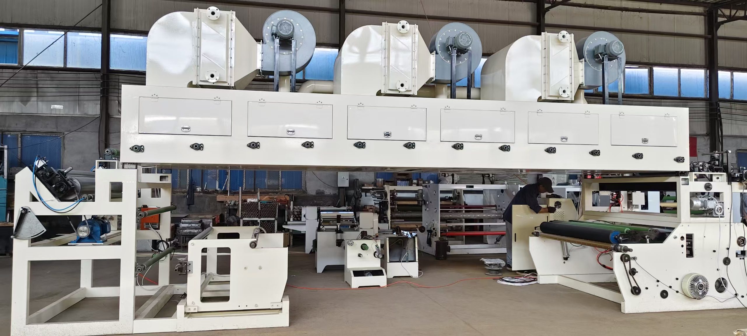 Uniformly applies adhesive onto film (BOPP/PVC/Masking tape, etc.), dries in oven and rewinds into jumbo rolls. The core equipment of the tape production line.