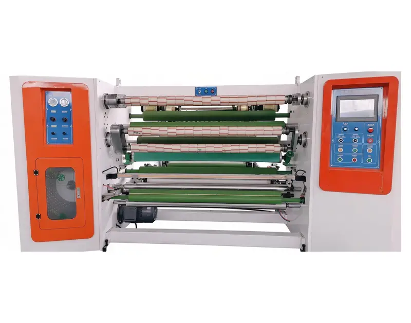 Higher automation reduces labor cost and increases efficiency. High‑end slitters use Siemens PLC for integrated control, featuring auto splice detection, non‑stop rewinding, and waste recovery – reaching speeds over 500 m/min. If budget is tight and production is not 24/7, a mid‑level semi‑automatic machine may suffice.
